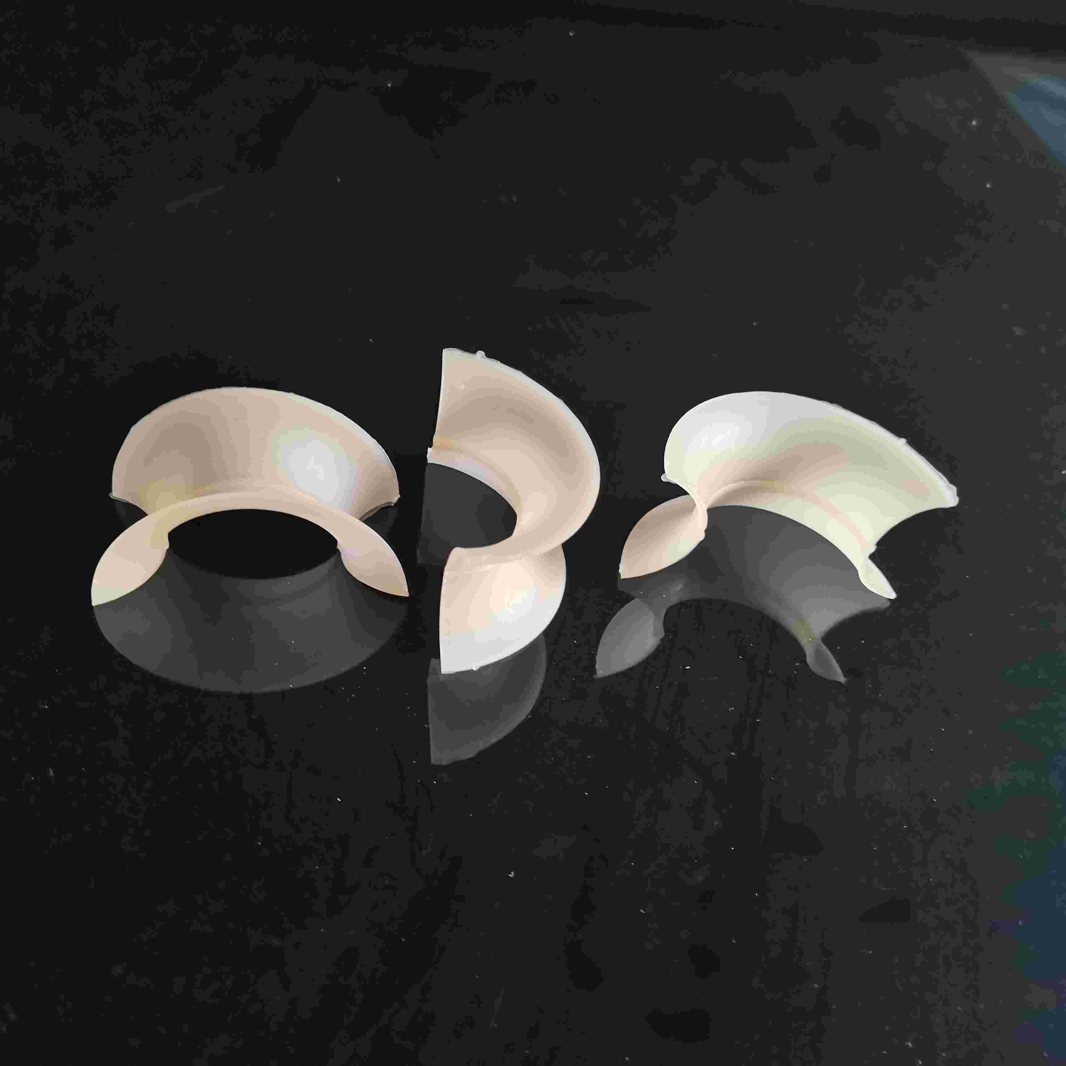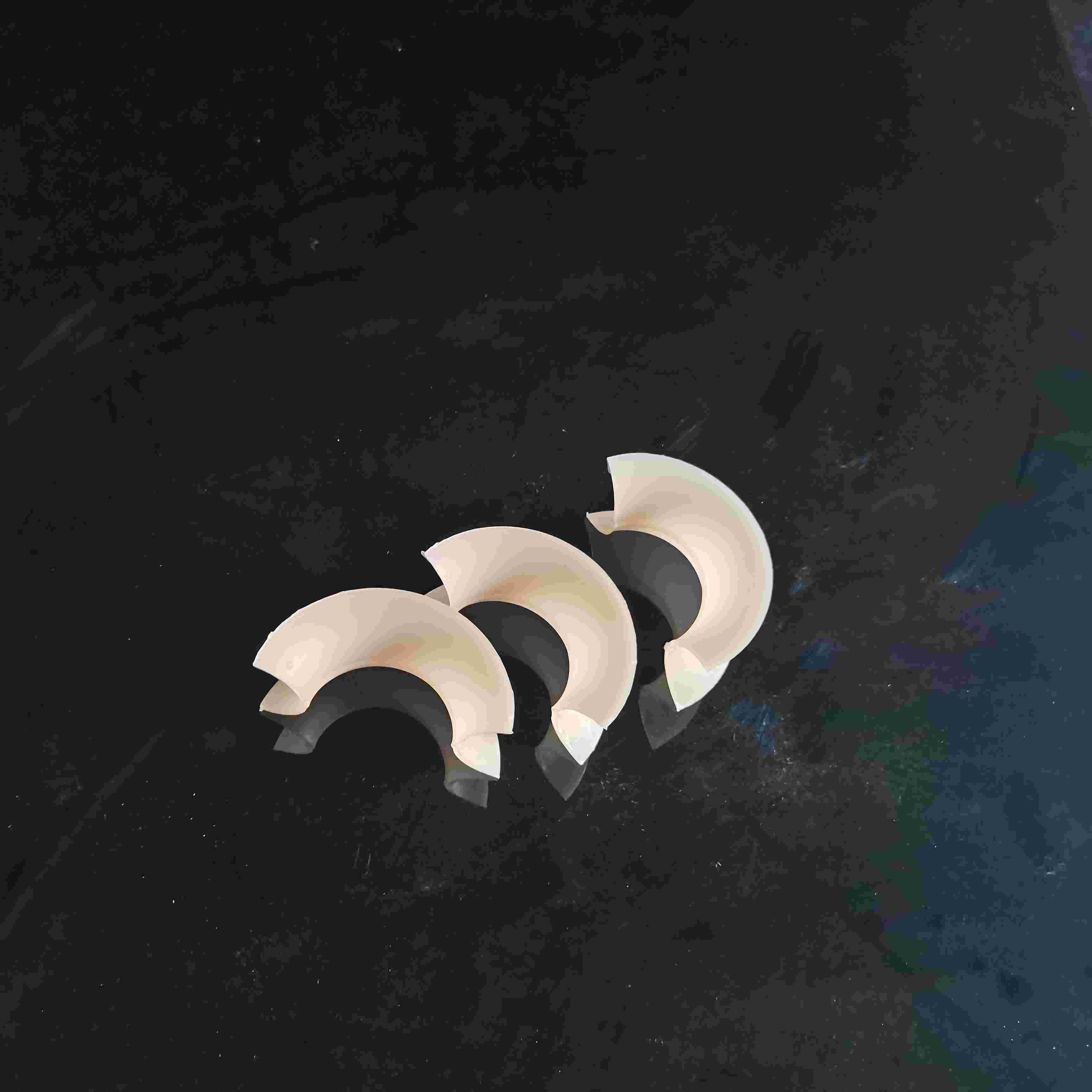 塑料矩鞍環(huán)填料對(duì)矩鞍環(huán)填料的改進(jìn)是通過(guò)在鞍背上開(kāi)孔,扇形弧面加工成貝殼鋸齒邊緣,使流道更加暢通,致使填料的單元匯聚點(diǎn)增多,所以提高了它的綜合性能。